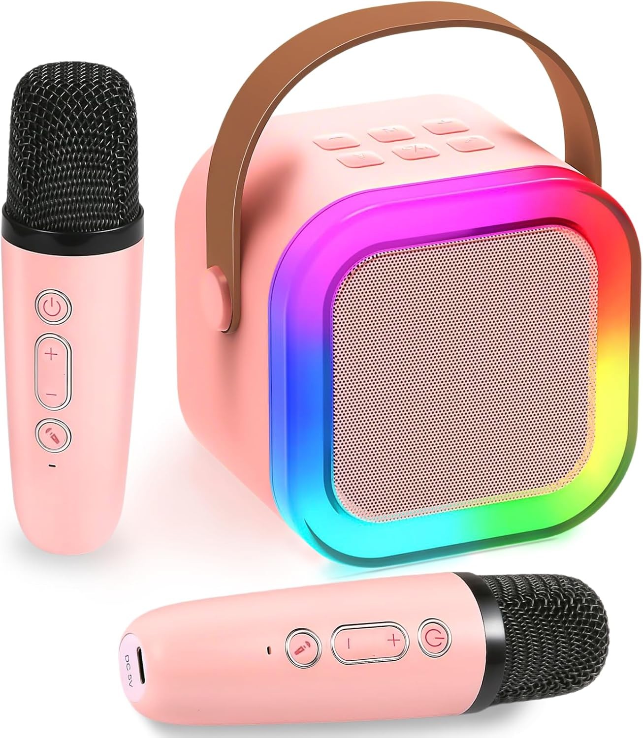 Karaoke Machine Mini Karaoke Machine for Kids Adults Karaoke Machine 2 Microphones and LED Lights Portable Bluetooth Speaker Birthday Gifts Toys for Girls and Boys (Rose)
