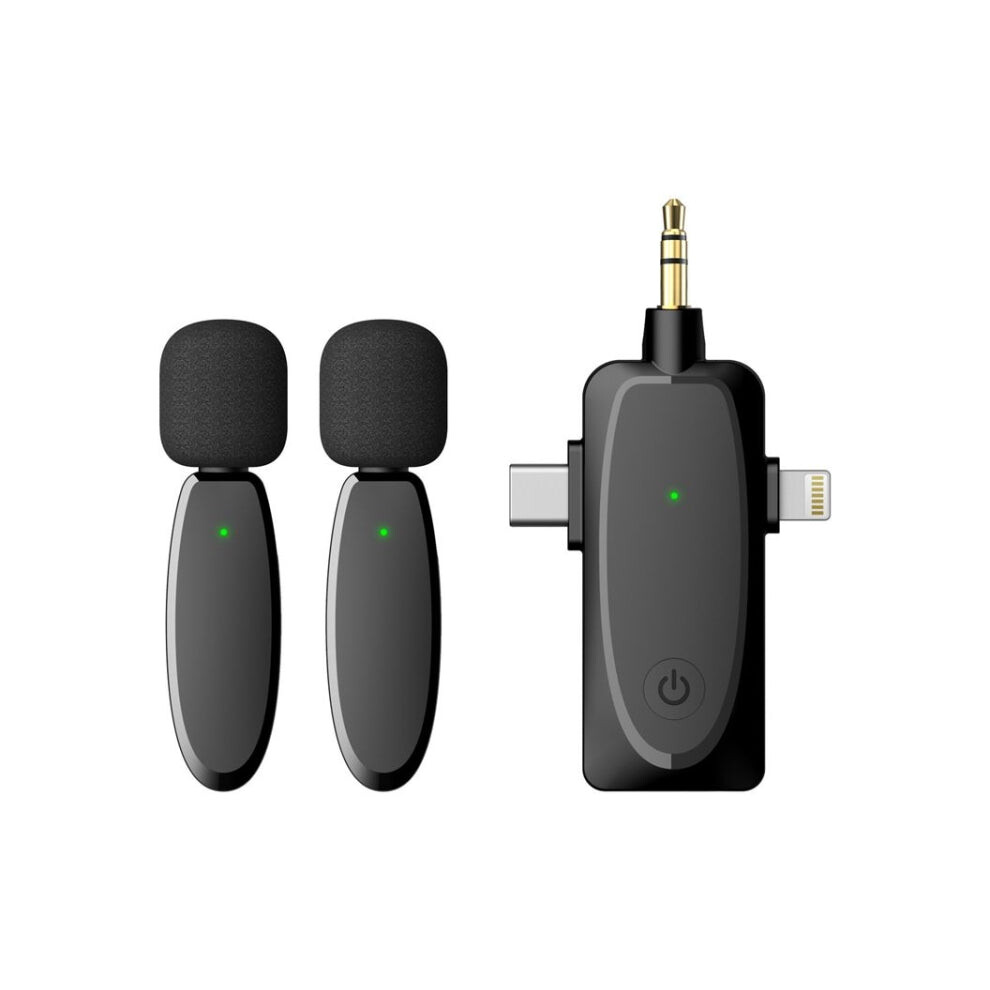 One by Two 3 in 1 Mini Wireless Lavalier Microphones for iPhone / Android / Camera with Noise Reduction Function
