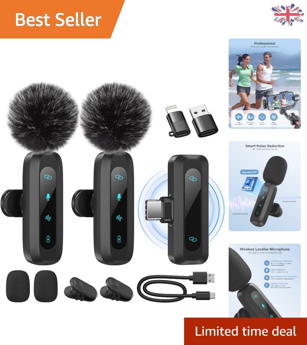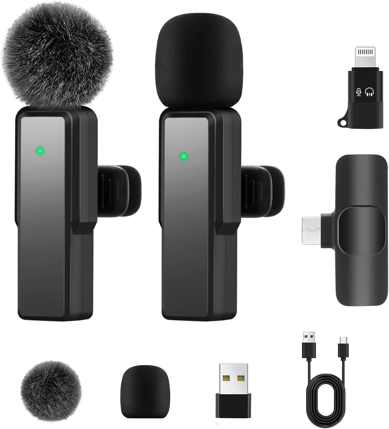 Microphone wireless,Microphone for iPhone & USB-C Plug, mini mics Wireless Microphones with Noise Reduction,mini microphone LED Display -wireless microphones Ideal for Vlog, TikTok & Content Creation