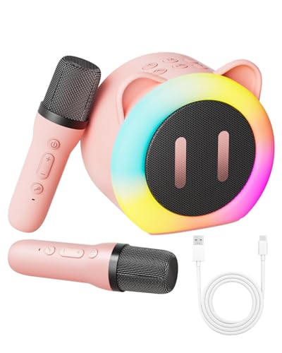 Chronus Kids Mini Karaoke Machine, Portable Karaoke Machine with 2 Wireless Microphones, Mini Bluetooth Karaoke Machine for Kids Ages 4-12(Pink)