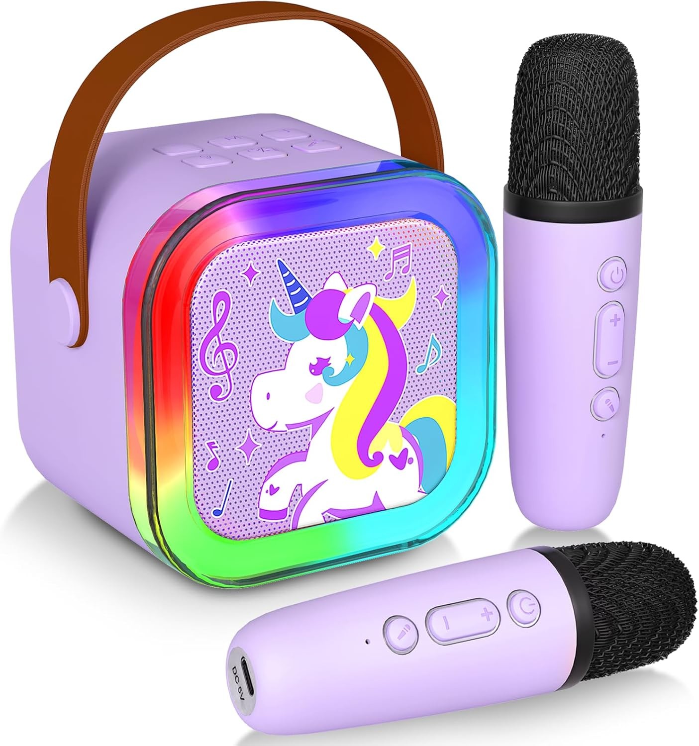 YLL Mini Karaoke Machine with 2 Wireless Microphones, TOP Kids Gifts for Girls Ages 3, 4, 5, 6, 7, 8, 9,10,11,12 +Year Old, 4-12 Years Old Birthday Toy Gift for Girls Boys Party (Purple)