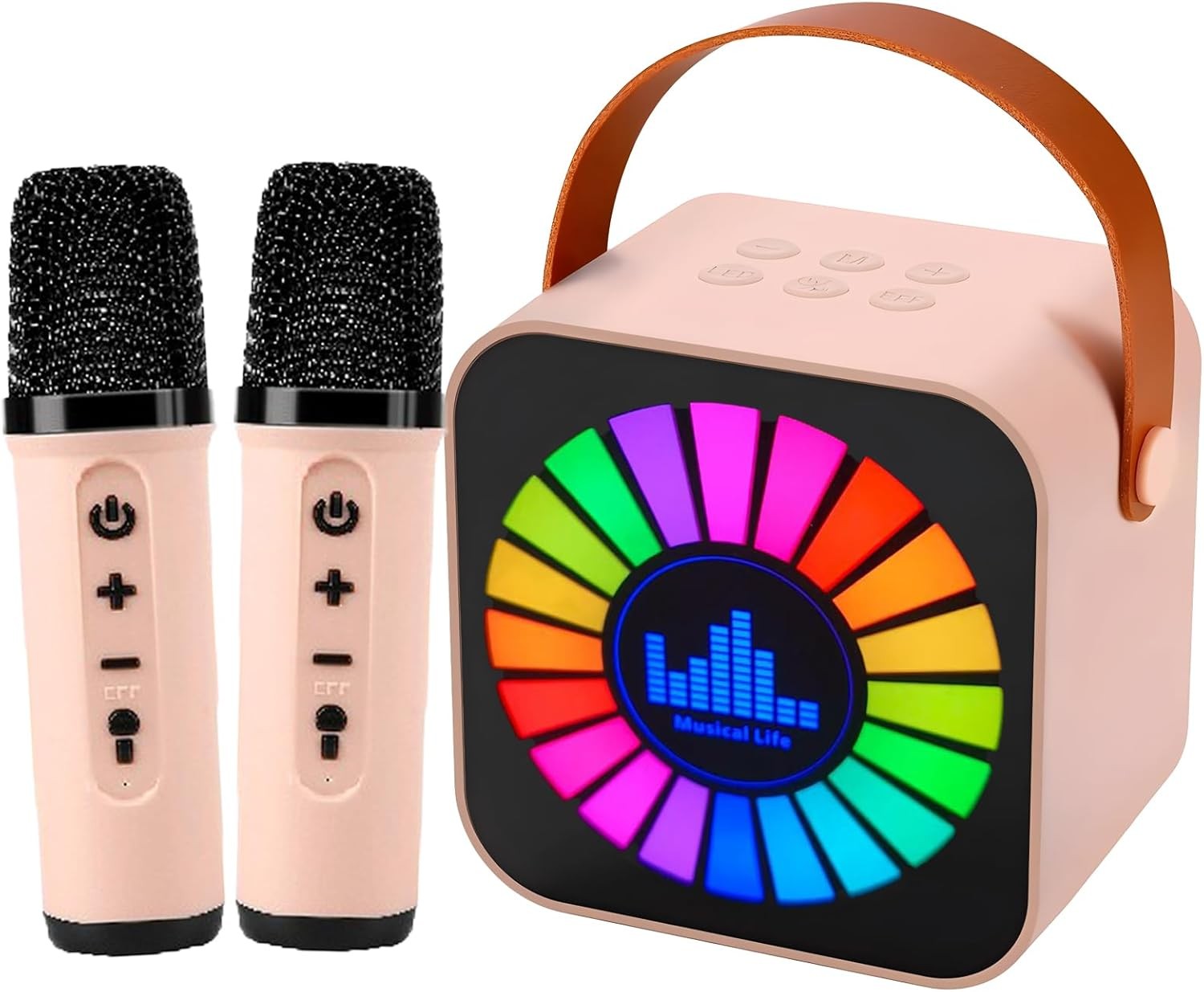 [2025] Gift for Girls Kid Karaoke Machine: Birthday Present for 3-12 Year Old Girls - Toys for Ages 3-12 Children - Mini Portable Karaoke Machine 2 Microphones for Kid - Kids' Wind & Brass Instruments