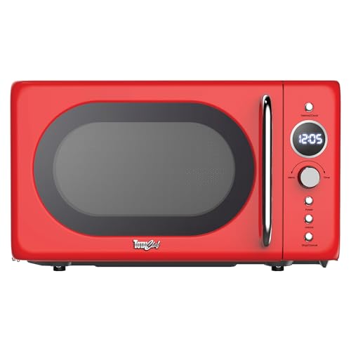 Total Chef Microwave Oven 20L 700W Retro Mini Ovens Digital LED Display 8 Preset Modes 60 Min Timer 5 Cooking Power Levels Removable Glass Turntable Countertop Freestanding Small Microwaves Red