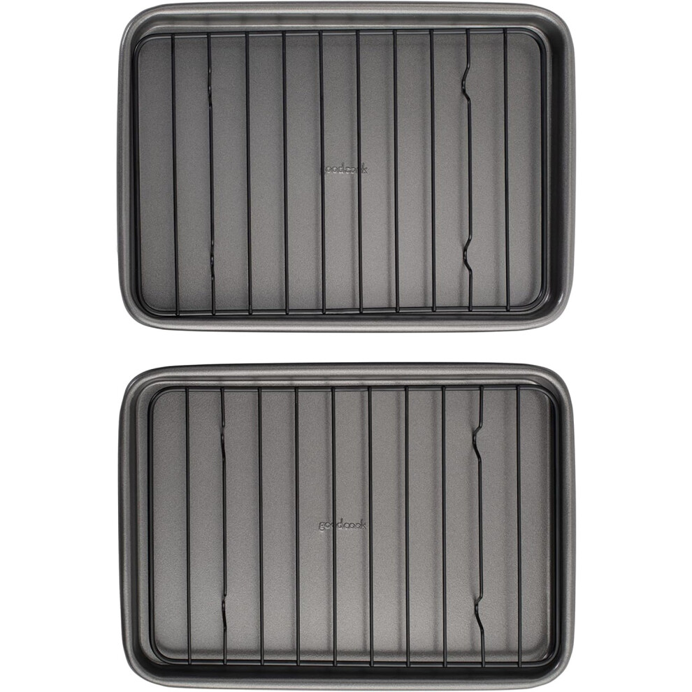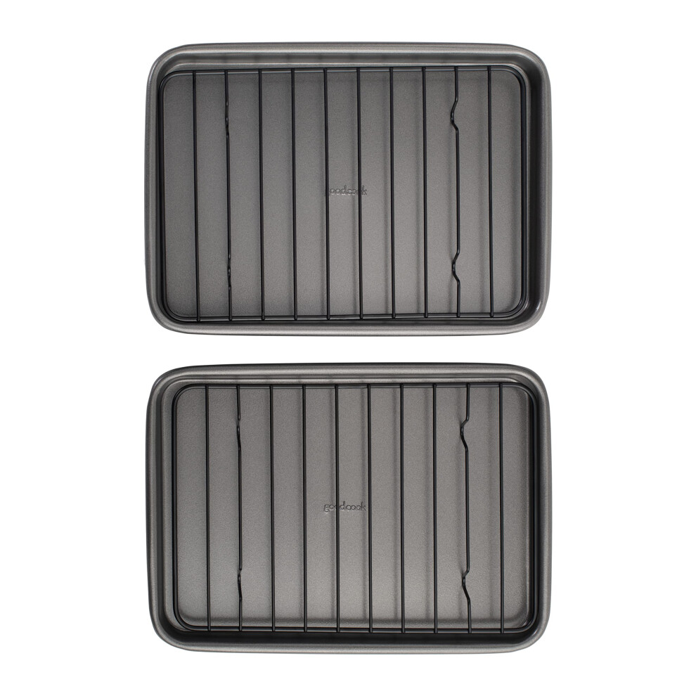 GoodCook Set of 2 Nonstick Steel 9" x 6.2" Toaster Oven Mini Baking Sheets with Racks, Gray (4221)