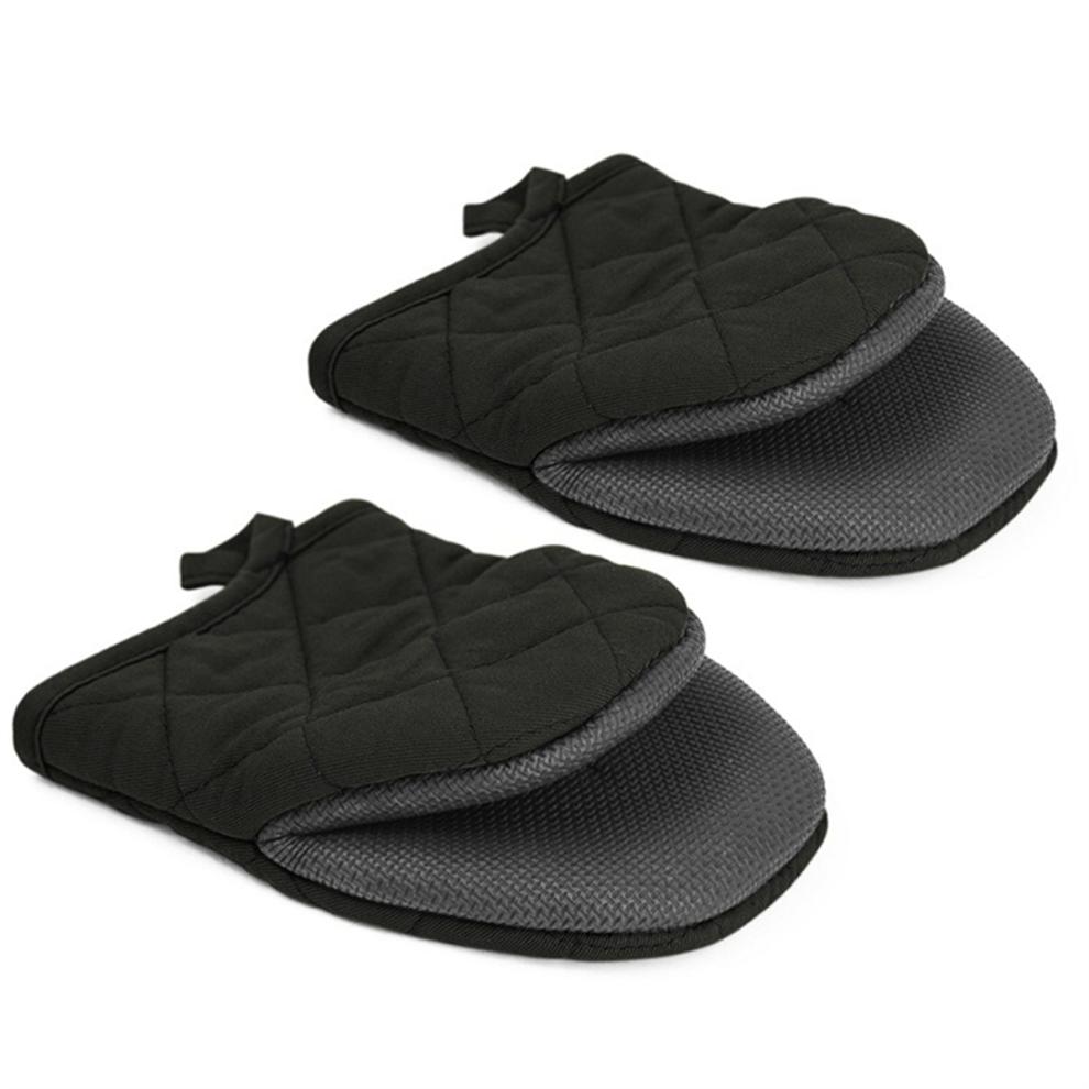Oven Mitts, Heat Resistant Silicone Kitchen Mini Oven Mitts,Baking Grilling Barbecue Microwave Machine Washable Black