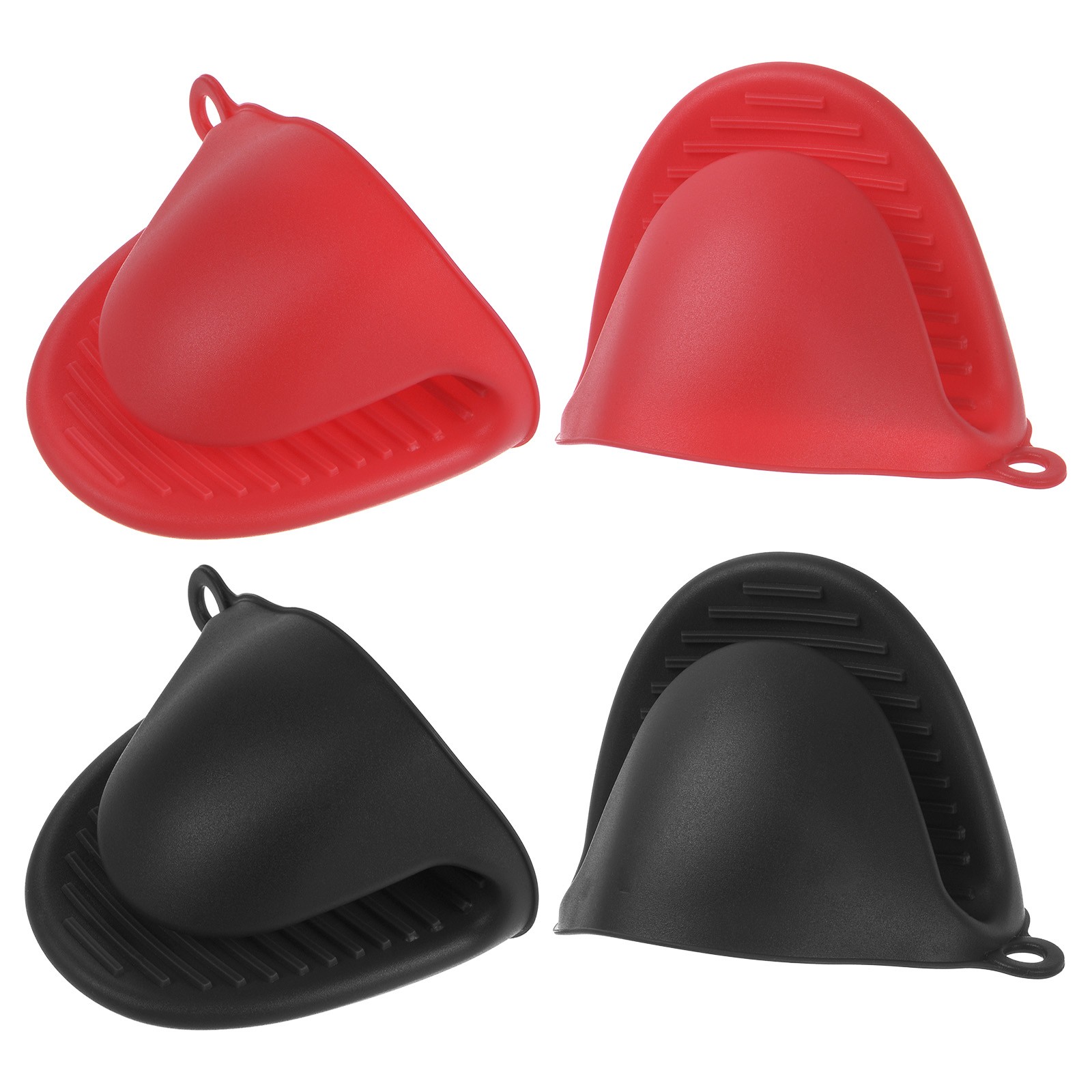 4pcs Mini Silicone Oven Mitts for Cooking Baking Gloves Red Black