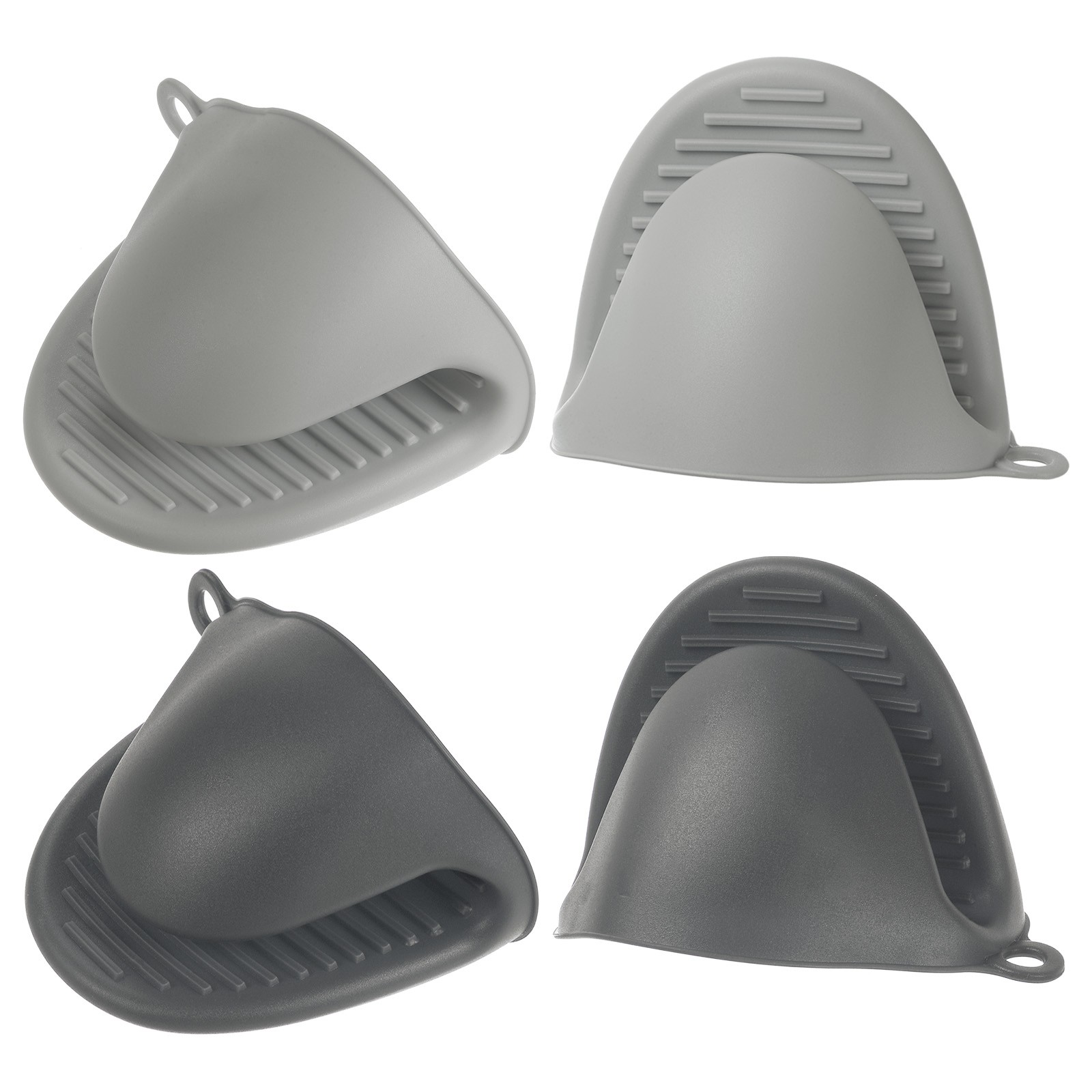 4pcs Mini Silicone Oven Mitts for Cooking Baking Gloves Dark Gray Light Grey