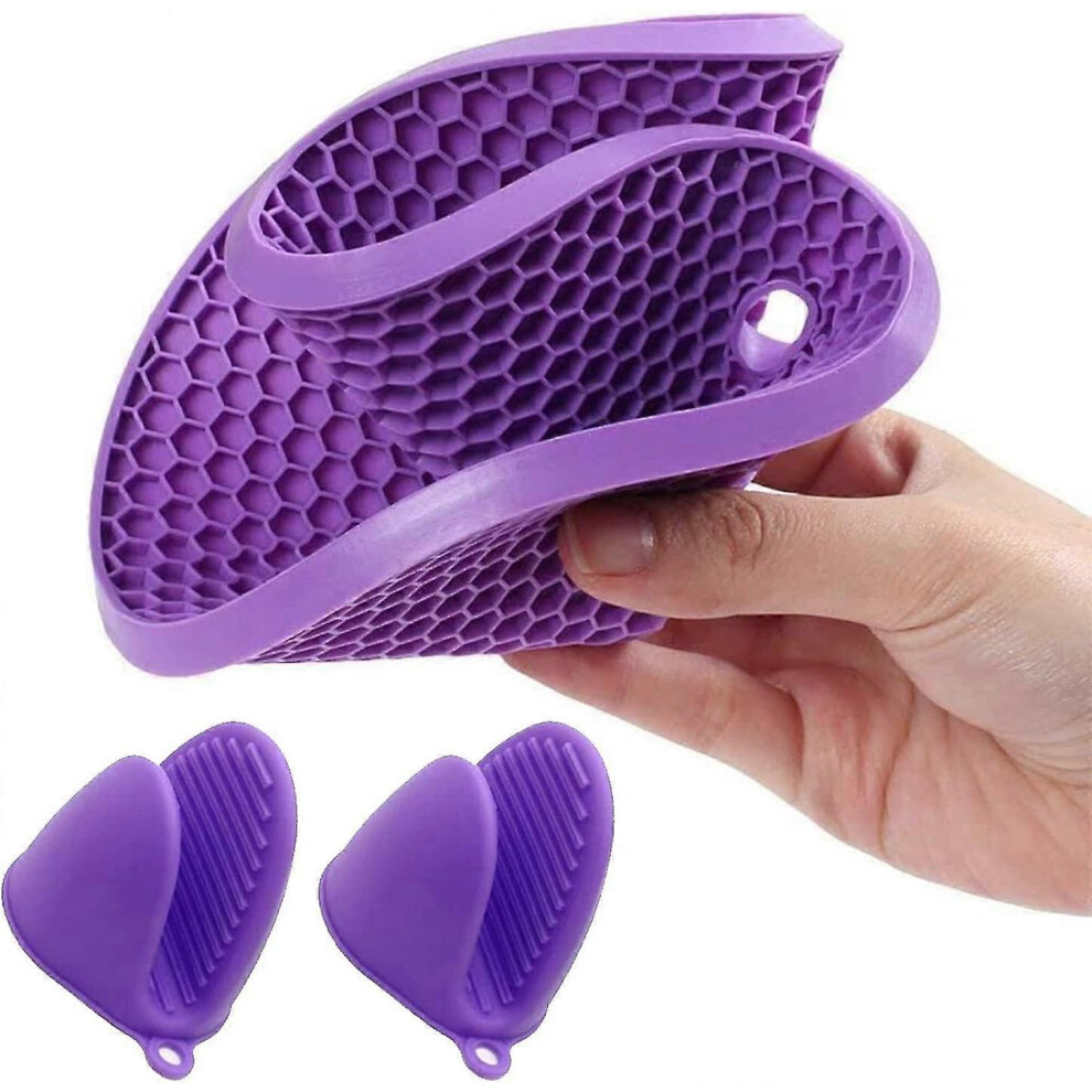 (As show, One size) 2 Pcses Heat Resistant Silicone Mini Cooking Oven Mitts Glove For Kitchen, Bonus/1 Set Silicone Potholder Hot Pads, Silicone Pinch