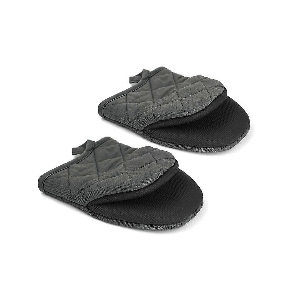 (As show, One size) Grey Small Oven Mitts, Mini Oven Gloves Silicone Pot Holders Cotton Trivet Hot Mitts