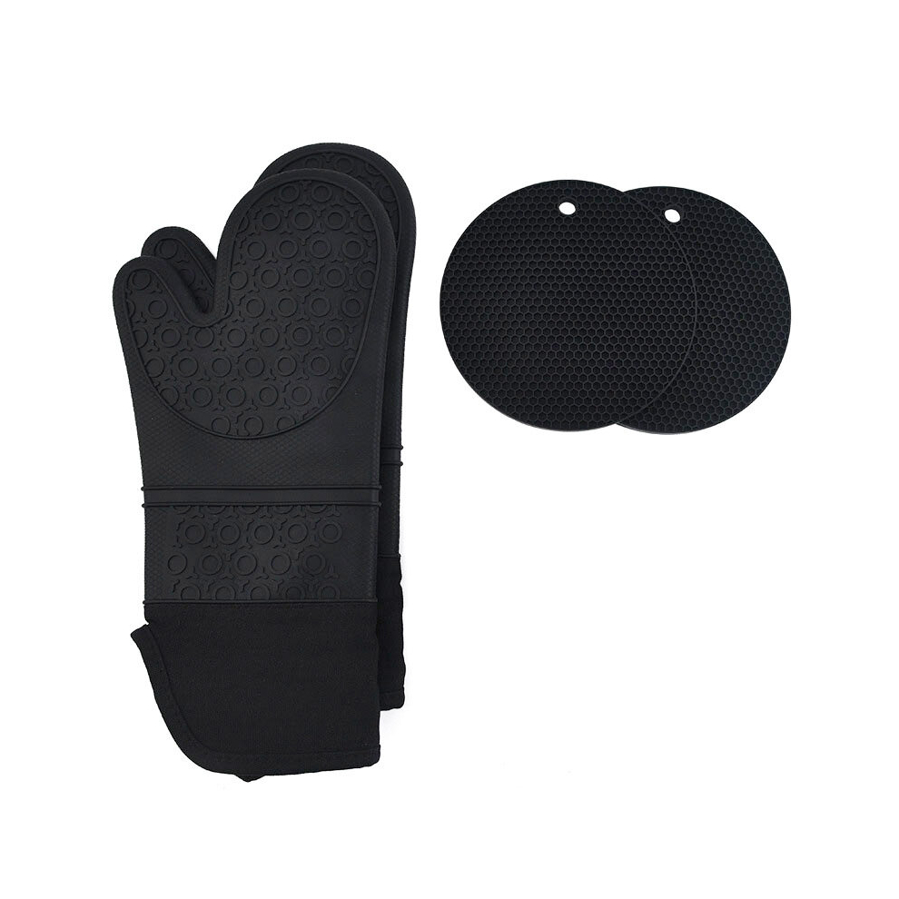 1 4pcs Silicone Oven Mitts Silicone Oven Mitts And Pot Holders Sets Extra Long Heat Resistant Oven Gloves With Hot Pads Mini Oven Mittens For Grilling