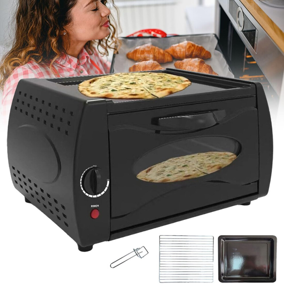36L Small Oven with 2 Hot Plates, Countertop Toaster Oven, Grill,