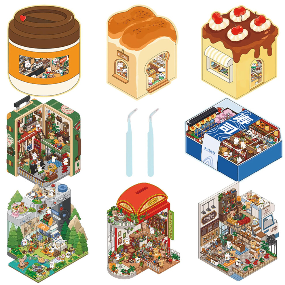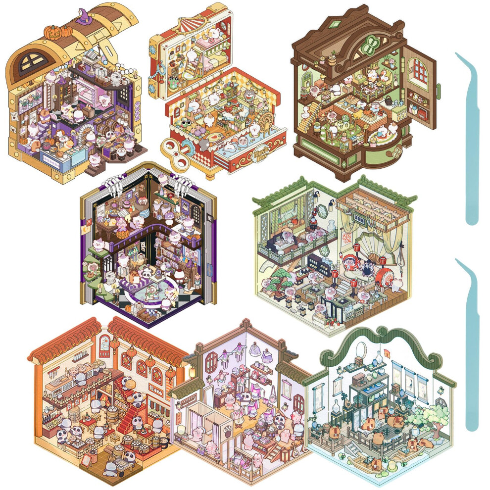 DIY 3D Sticker Scene 8 Sets Fun DIY 3D House Stickers Make Your Own Mini Room Scenes Cute Cartoon 3D Miniature Scene Stickers Book 3D Sticker Ther