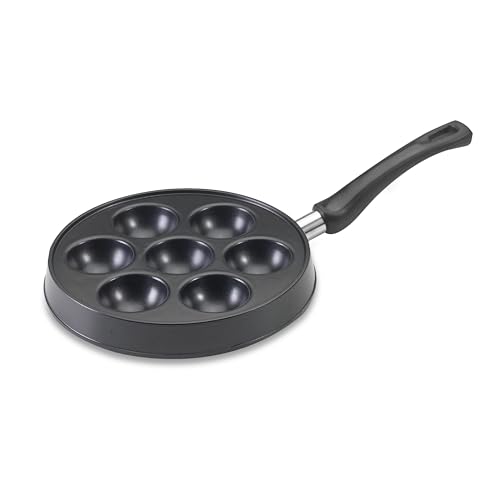 Nordic Ware Danish Ebelskiver Pan, Cast-Aluminium Danish Pancake Frying Pan, Danish Pancake Pan for 7 Ebelskiver Pancakes, Mini Pancake Maker, Colour: Black