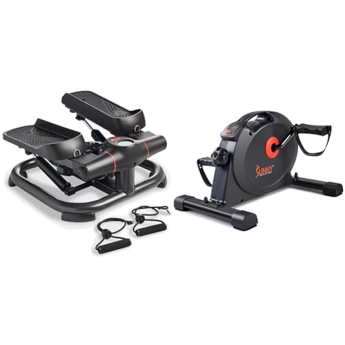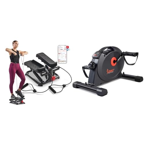 Sunny Health and Fitness Total Body Smart 2-in-1 Stepper Machine w/Resistance Bands + Under Desk Dual Function Smart Mini Pedal Exerciser Cycle Bikes with SunnyFit App