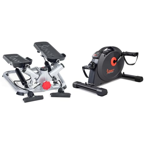 Sunny Health & Fitness Advanced Twist Stepper Machine with Resistance Bands - SF-S0979 + Under Desk Dual Function Smart Mini Pedal Exerciser Cycle Bikes with SunnyFit App