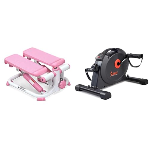 Sunny Health & Fitness Exercise Stepping Machine, Portable Mini Stair Stepper for Home or Office Workouts + Under Desk Dual Function Smart Mini Pedal Exerciser Cycle Bikes with SunnyFit App