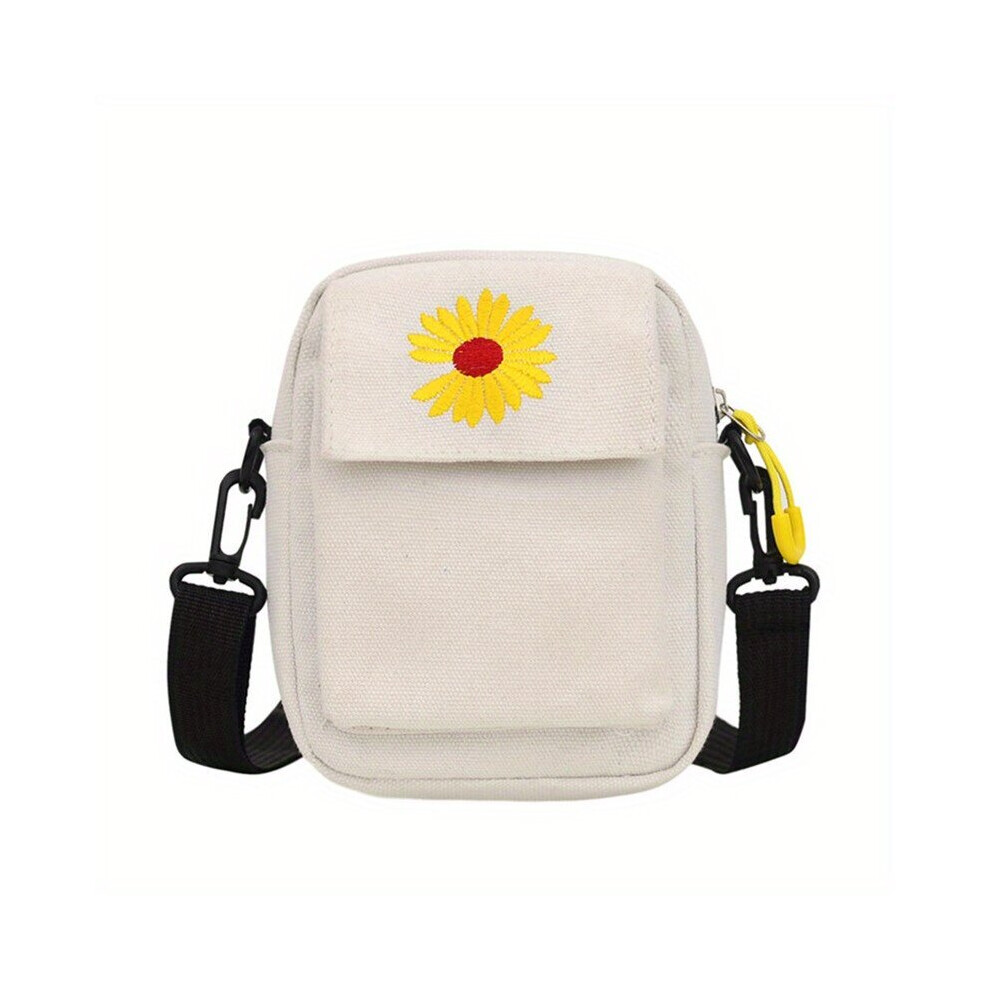 Daisy Embroidery Canvas Bag Literary Square Crossbody Bag Mini Zipper Phone Purse 7 09 5 51 2 36 Inch
