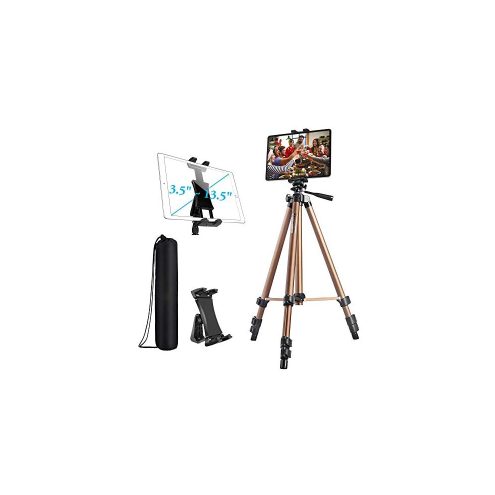 Ipad Tripod Stand Phone Tablet Tripod mount Holder 51 inch Adjustable Aluminum for iPad Pro 12.9 11 10.5, iPad Air Mini, Surface Galaxy Tab 3.5 t