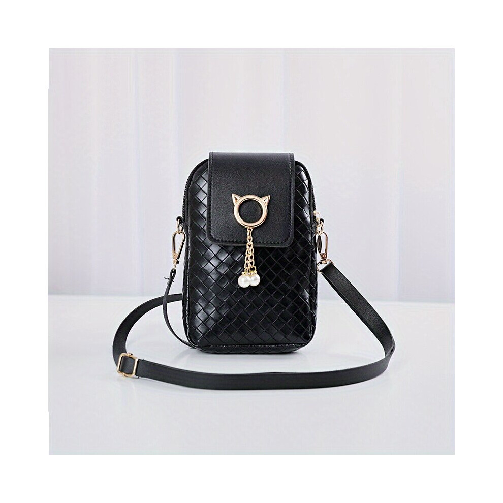 Braid Detail Phone Bag Mini PU Leather Crossbody Bag Womens Metal Decor Flap Purse 8 27 5 51 3 15 Inch