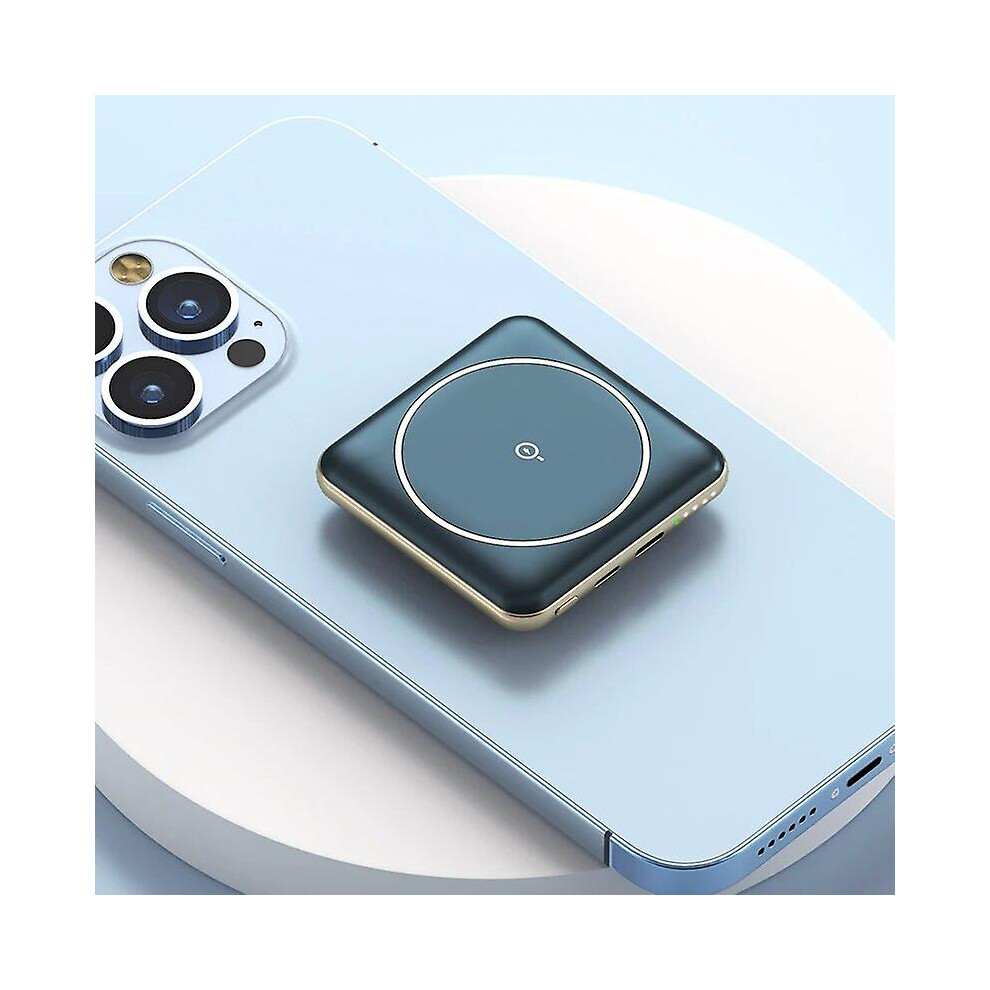 (Blue) Power Bank 10000mah Magnetic Wireless Charger Powerbank For Iphone 12 13 14 Huawei Samsung Xiaomi Mini Portable External Battery