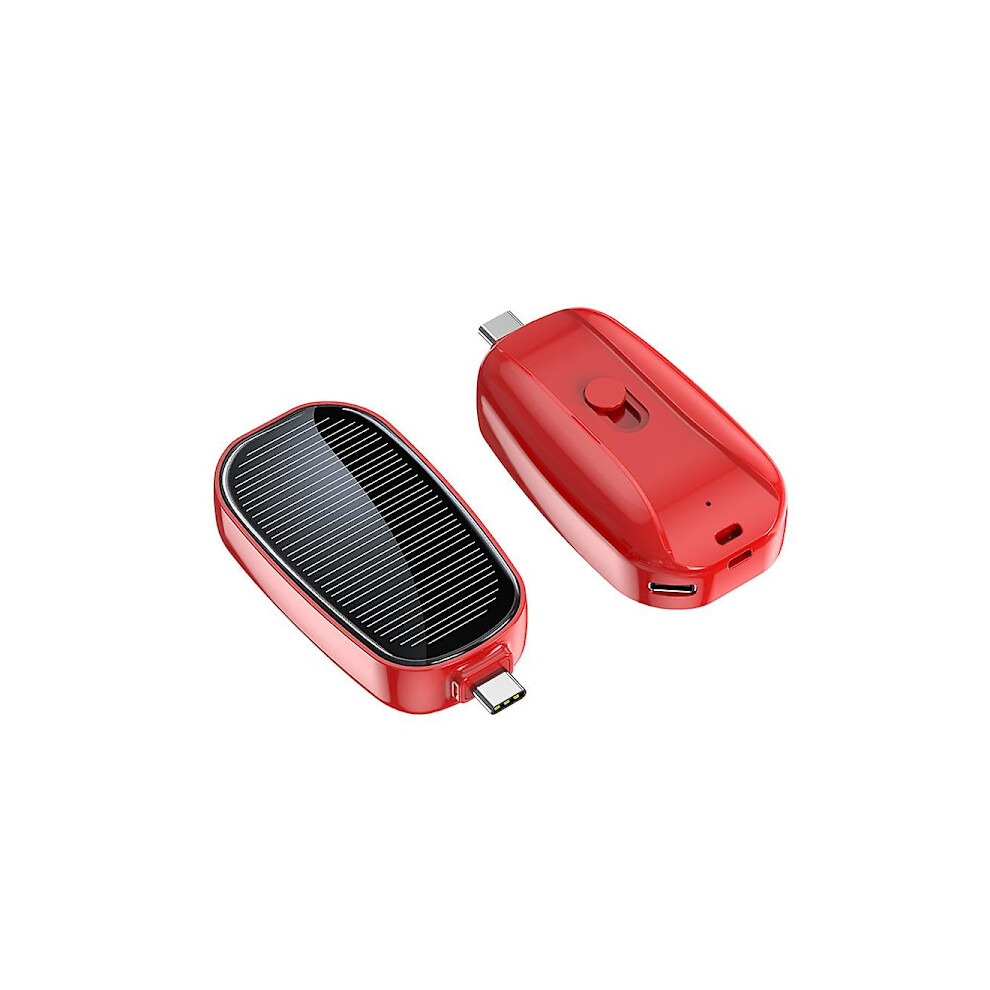 Mini Solar Charger Powerbank Portable Keychain Powerbank Compatible with Mobile Phone 1200mAh Red: For type-c