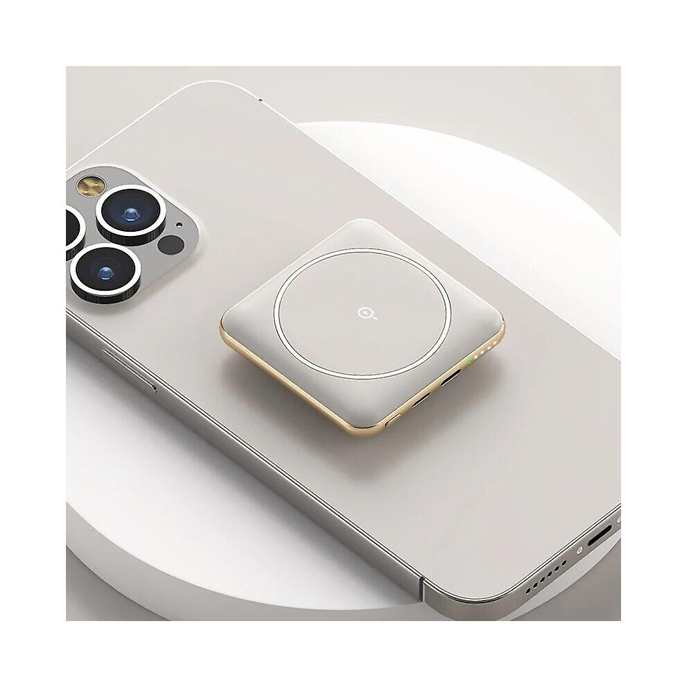 (White) 5000mah Mini Magnetic Wireless Fast Charging Power Bank Portable Powerbank Pocket