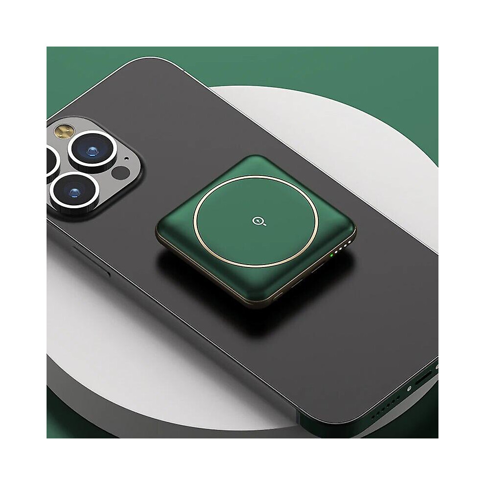 (Green) 5000mah Mini Magnetic Wireless Fast Charging Power Bank Portable Powerbank Pocket