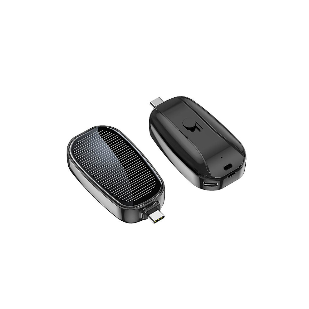 Mini Solar Charger Powerbank Portable Keychain Powerbank Compatible with Mobile Phone 1200mAh Black: For type-c