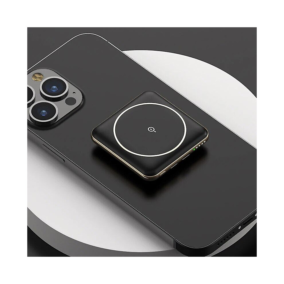 (Black) 5000mah Mini Magnetic Wireless Fast Charging Power Bank Portable Powerbank Pocket