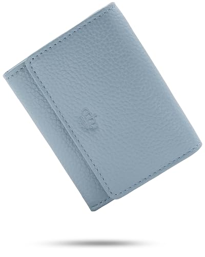 Baur Women's Mini Purse | Press Stud Closure | Small Wallet with 6 Card Slots | Coin Compartment with Zip in Gold | Genuine Leather Wallet with RFID Protection, Dove Blue, 11,5 x 9 x 2 cm, Classic