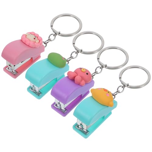 SHERCHPRY 4 Pieces Small Cartoon Animal Staplers with Key Chains Mini Handheld Press Stapler Set for Students and Office Desk Cute Portable School for Home Use