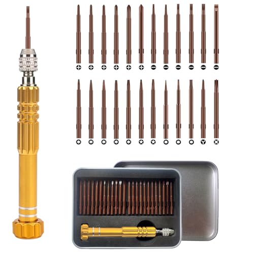 BAKESHU 24-in-1 Mini Screwdriver Set, Miniature Screwdriver, Tiny Precision Screwdriver, Eyeglasses, Sunglasses, Watches, Jewelry, Cell Phone Repair Screwdrivers(Gold)