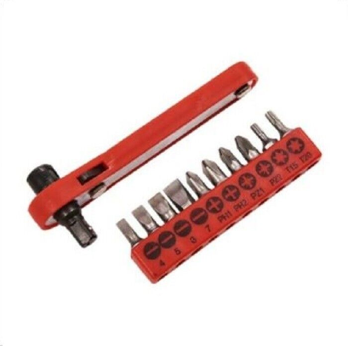 11pc Mini Offset Ratchet Screwdriver Set Cabinet Stubby Pozi Torx Bits
