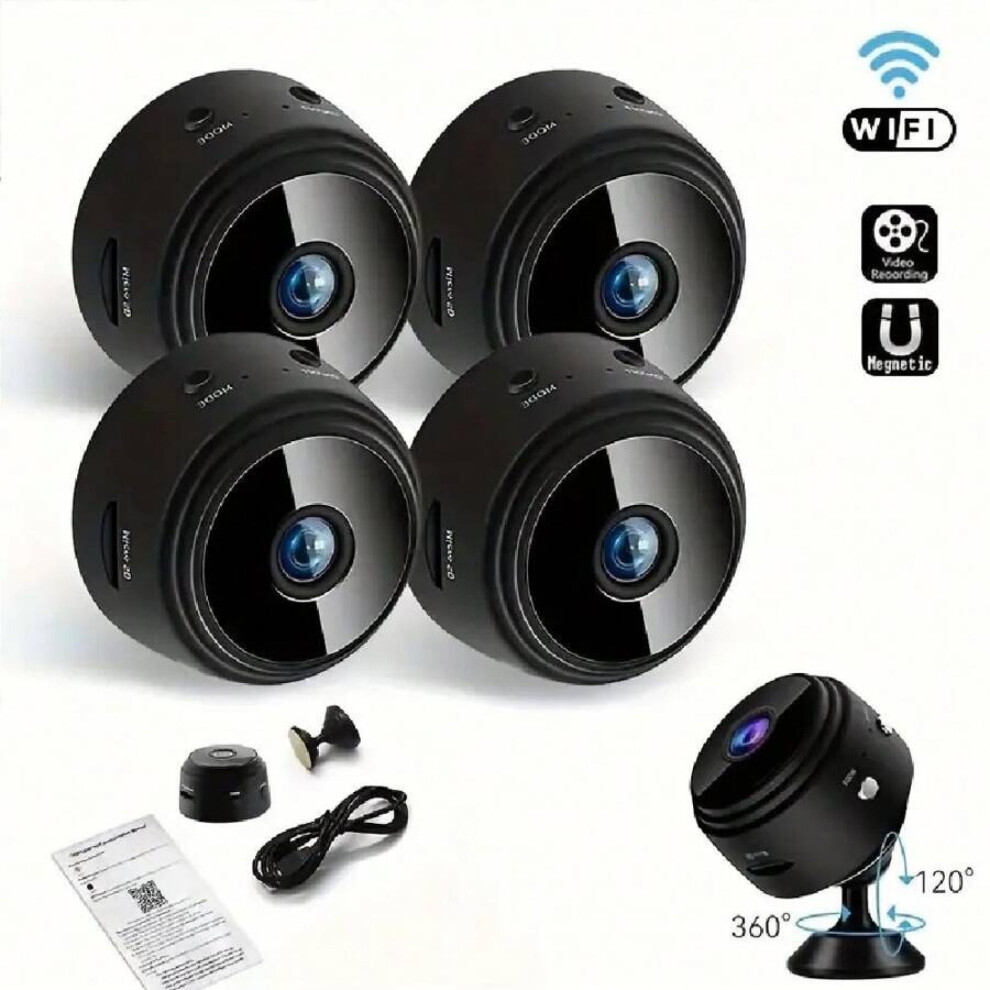 4-Pack Mini WiFi Security Cameras â Rechargeable, Night Vision, Motion Detection, App-Controlled | Compatible with Home Indoor & Outdoor