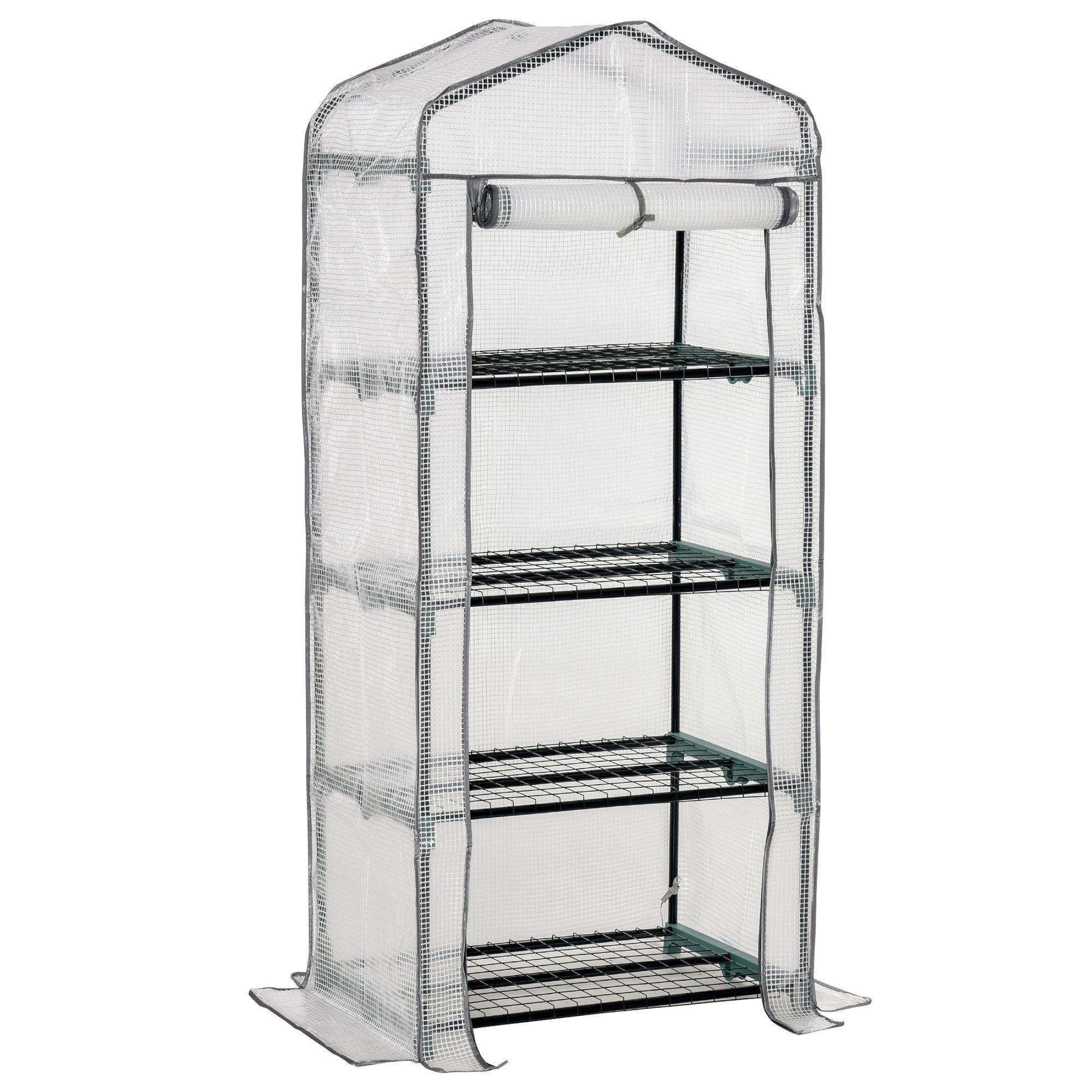 Outsunny Mini Greenhouse 4-tier Portable Plant House Shed Pe Cover White, White