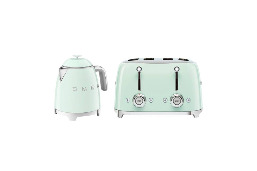 Smeg Mini Kettle and Toaster Set, 4 Slice, 2000W, Green, KLF05PGUK/TSF03PGUK in Light Green