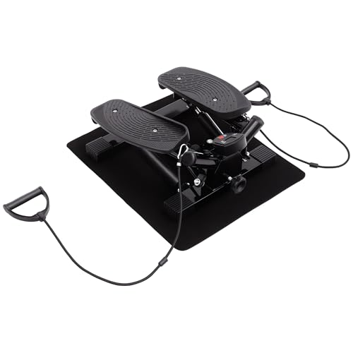 HOMCOM Portable Mini Stepper, Exercise Fitness Machine for Legs Arms Thigh Toner Toning Machine, Stair Steps Workout Training Fitness, w/Resistance Bands and Floor Mat, Black