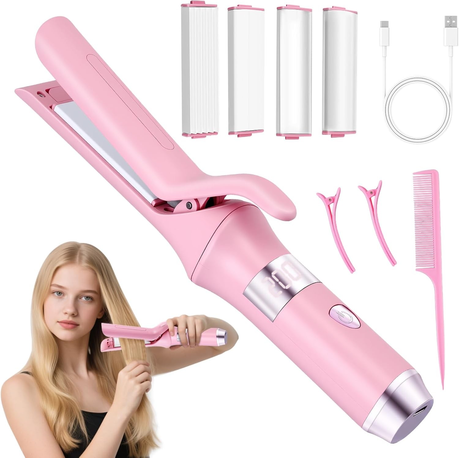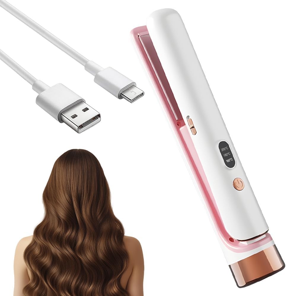 Mini Cordless Hair Straighteners & Curling Wand - Portable USB Wireless Hair St
