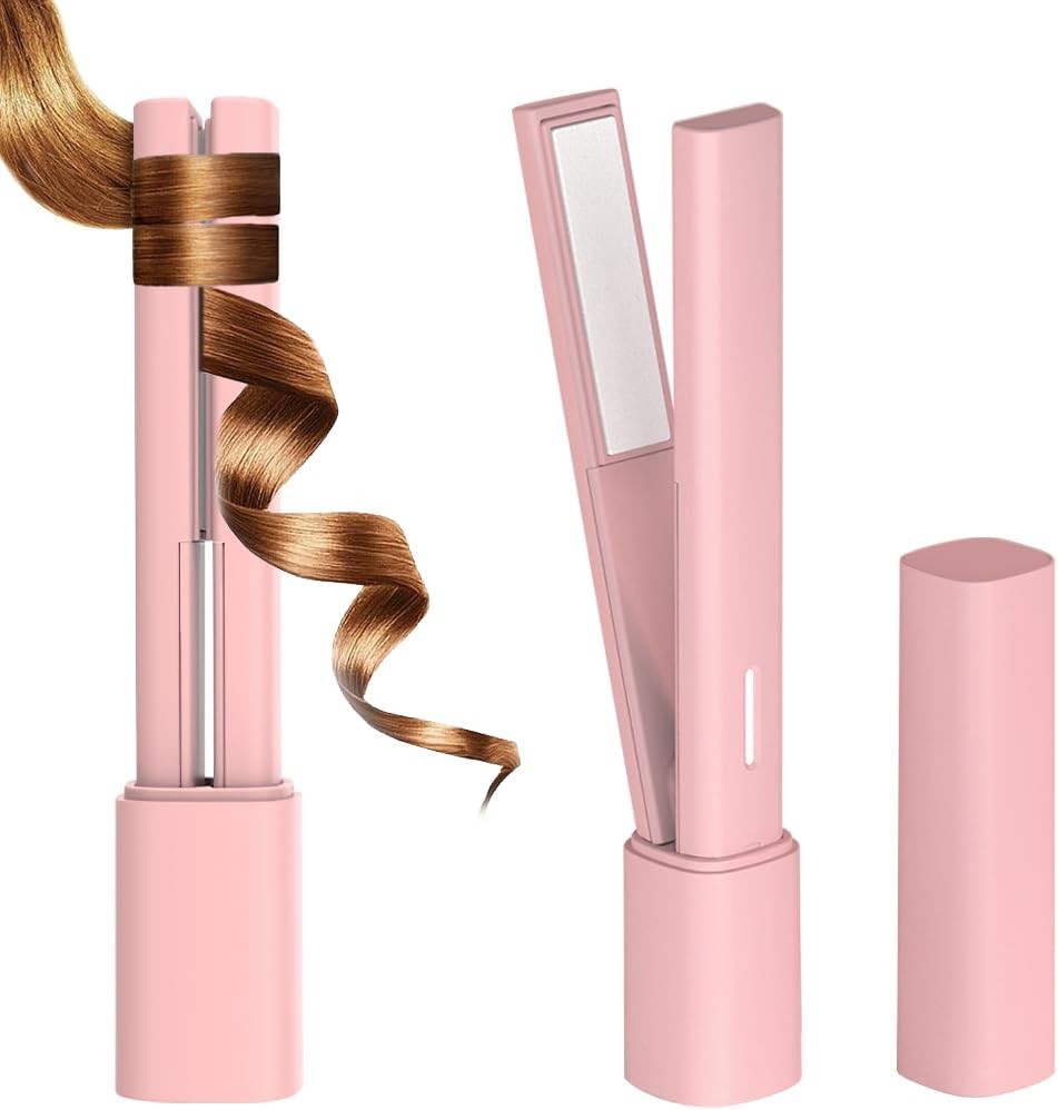 Cordless Hair Straighteners and Curler, 2 in 1 Mini Portable Flat Iron and Curl