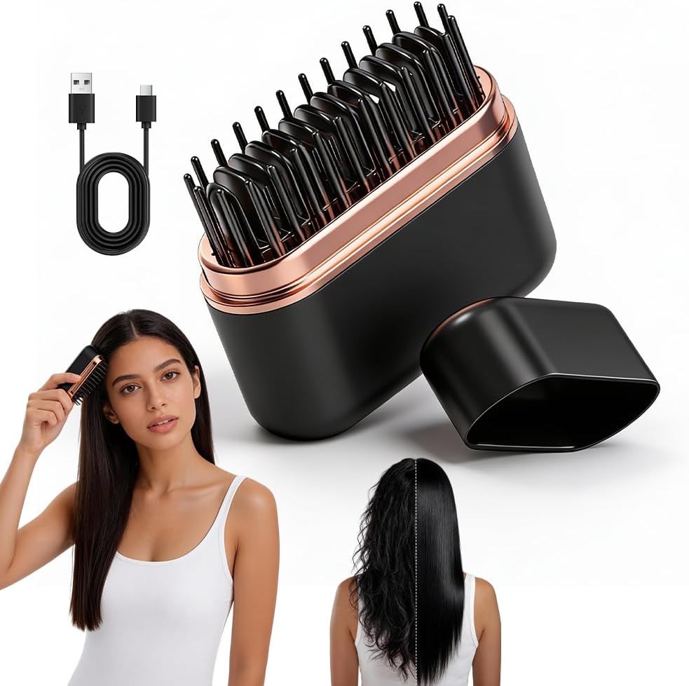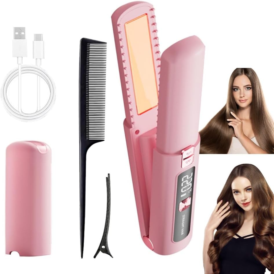 Mini Hair Straightener, 2 in 1 Mini Cordless Hair Straighteners Comb, Portable
