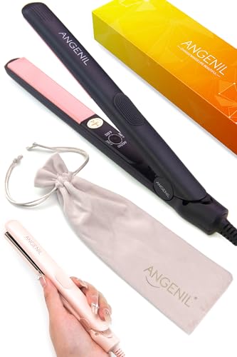 ANGENIL Pro Ceramic Mini Hair Straightener, Small Dual Voltage Travel Hair Straighteners Anti-Scald Silicone Heat Resistant, Mini Straighteners for Short Hair, Fine Hair, Beard, (140℃- 160℃ -190℃)