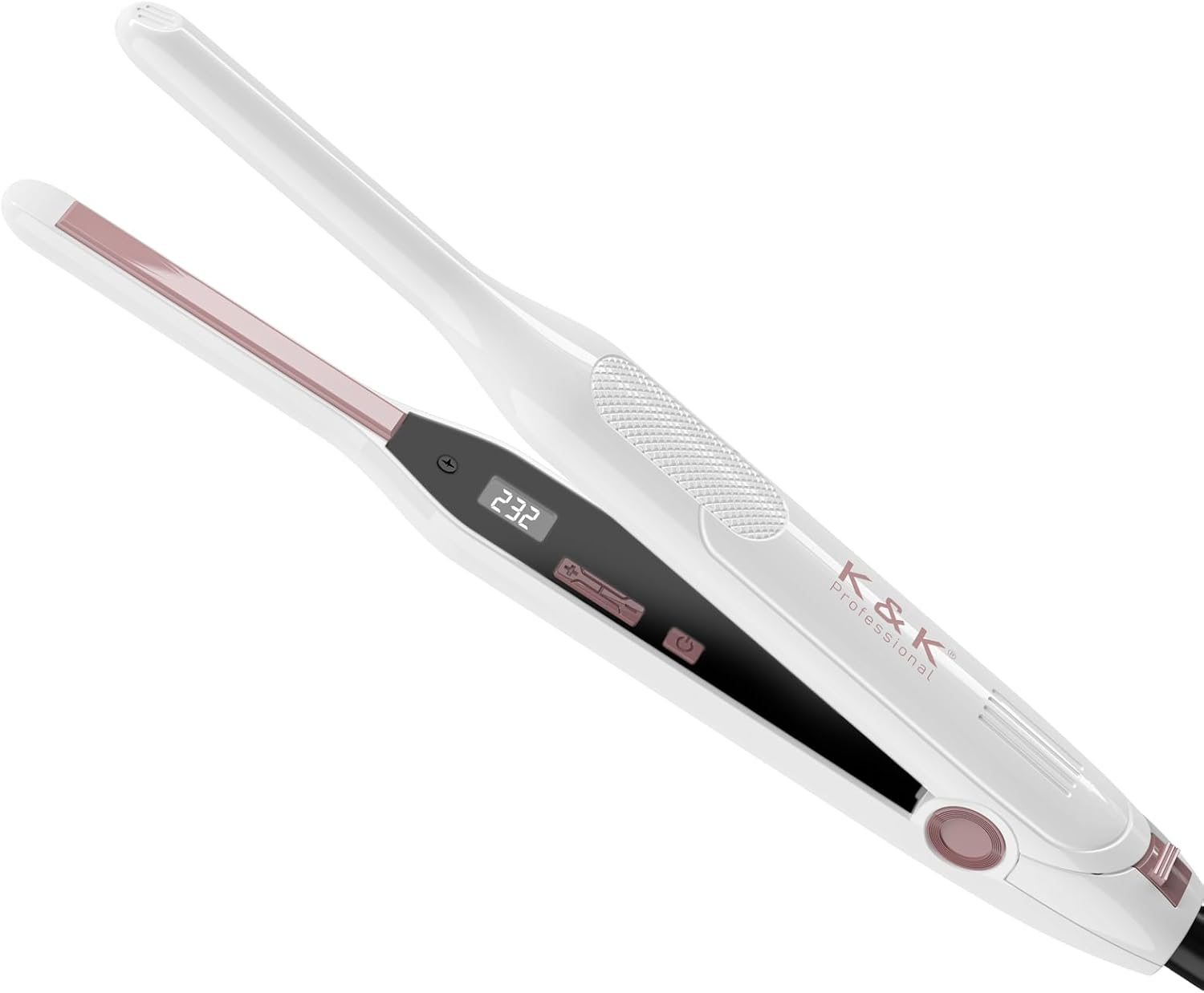 K&K Upgrade Pencil Straighteners Mini Straight and Curler Hair Straightener Thin Ceramic Floating Plate Auto Shut Off Flat Iron for Women Short Hair