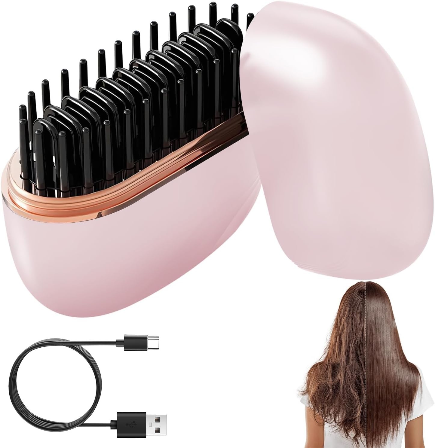 Mini Hair Straightener Brush, Rechargeable Portable Cordless Hair Straighteners