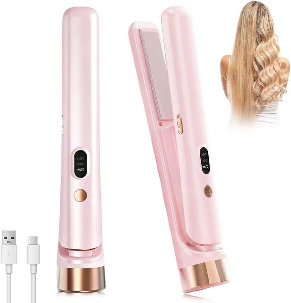 Mini Cordless Hair Straighteners, 2 in 1 Portable Flat Iron and Curler Adjustab