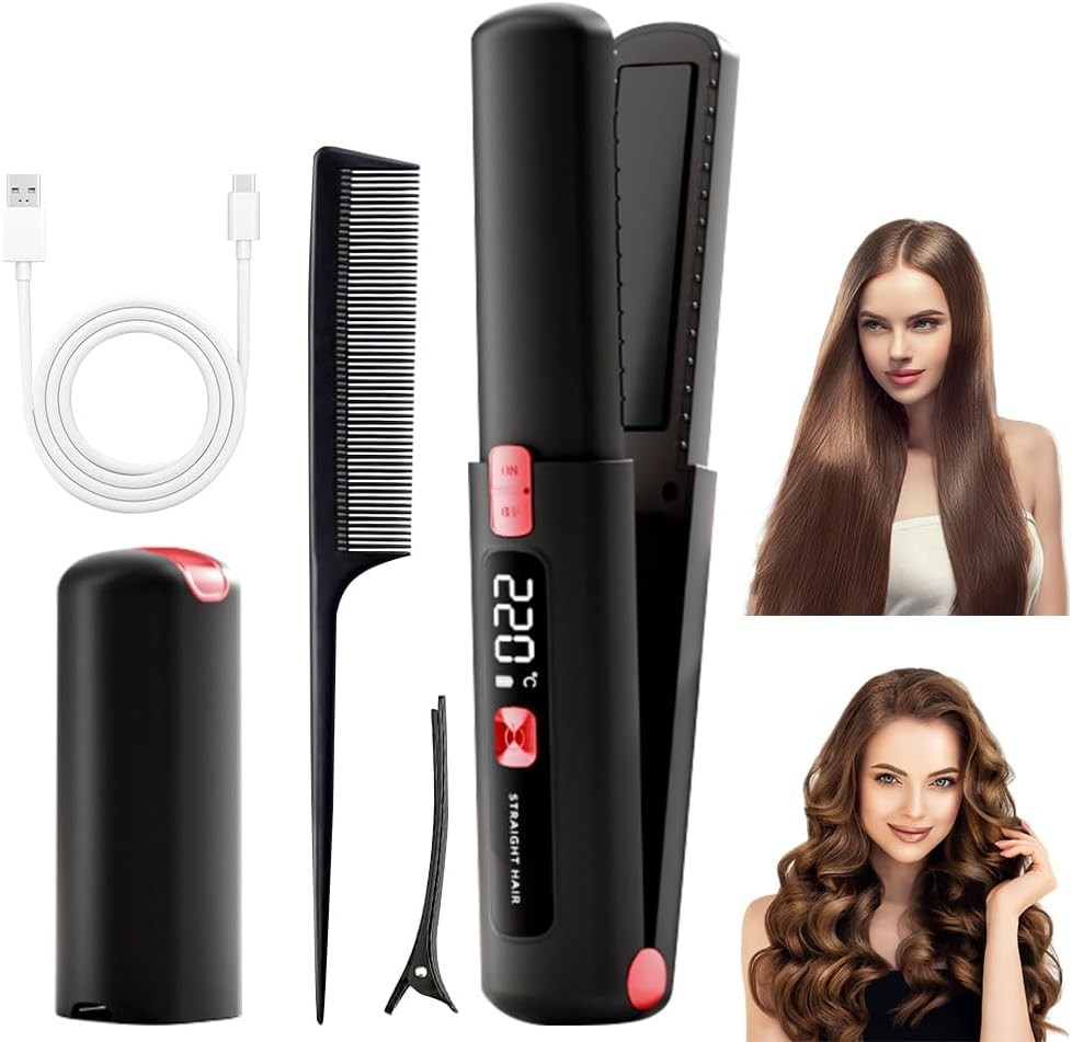 Cordless Hair Straighteners, 2 in 1 Hair Straightener and Curler Mini Portable