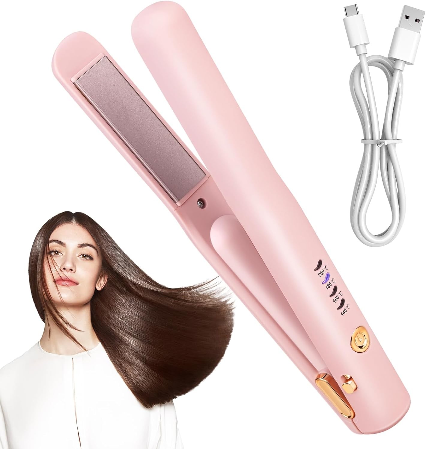 Mini Cordless Hair Straighteners - Portable USB Wireless Hair Straightener for