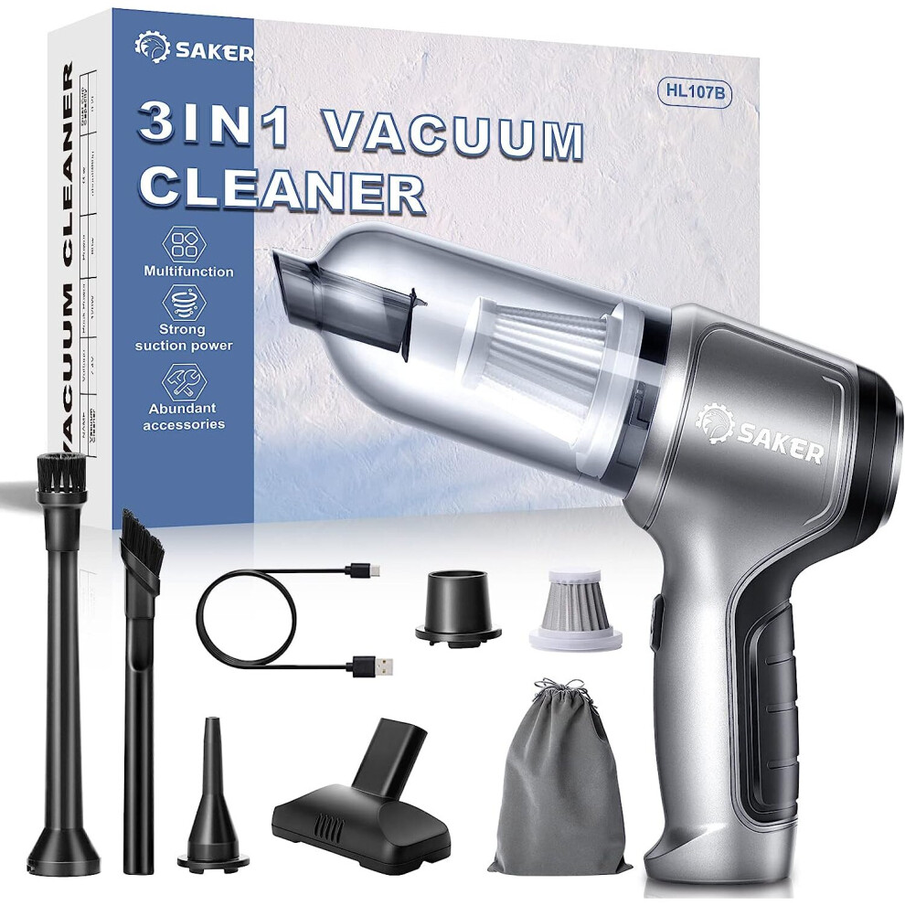 Saker Handheld Mini Vacuum Cleaner Cordless,Electric Compressed Air Duster, Mini Car Cleaner with Brushless Motor 12000PA Powerful and Type C, Wireles