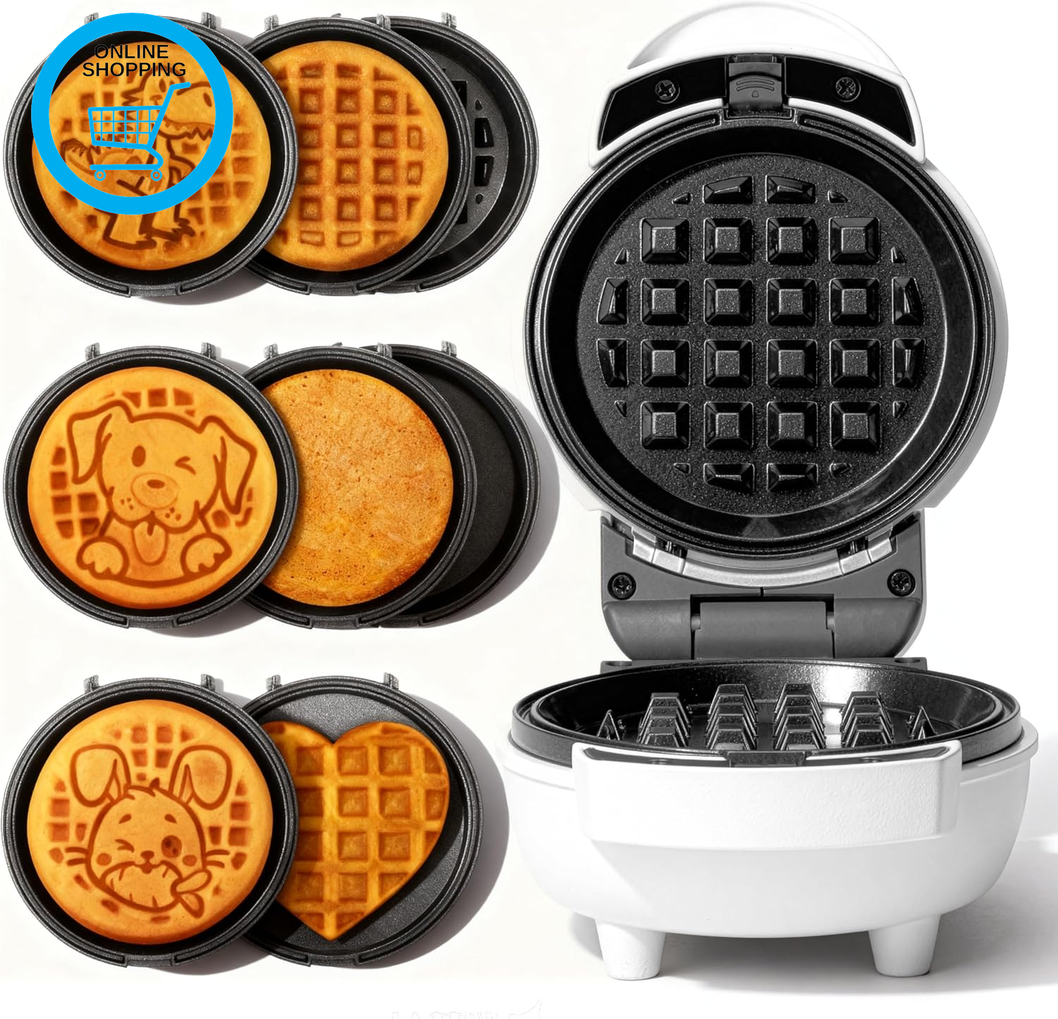 Multi Mini Waffle Maker & Iron, Waffle Machine, Bake 6 X 3 Inch Small Waffles, P