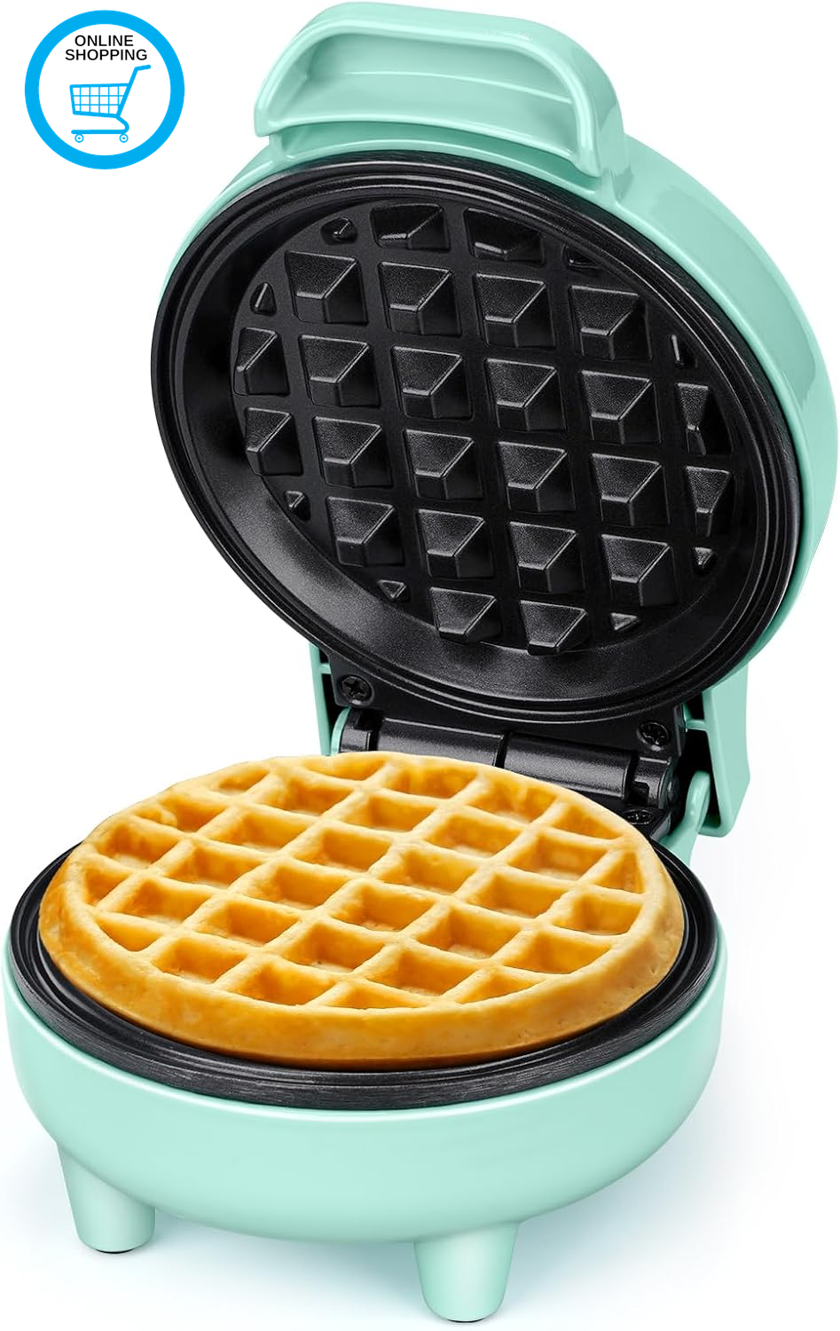 SNAILAR Mini Waffle Maker, 550W Waffle Iron, Ready Indicator Light, Non Stick Coating, Cool Touch Handle, Compact Size, Green