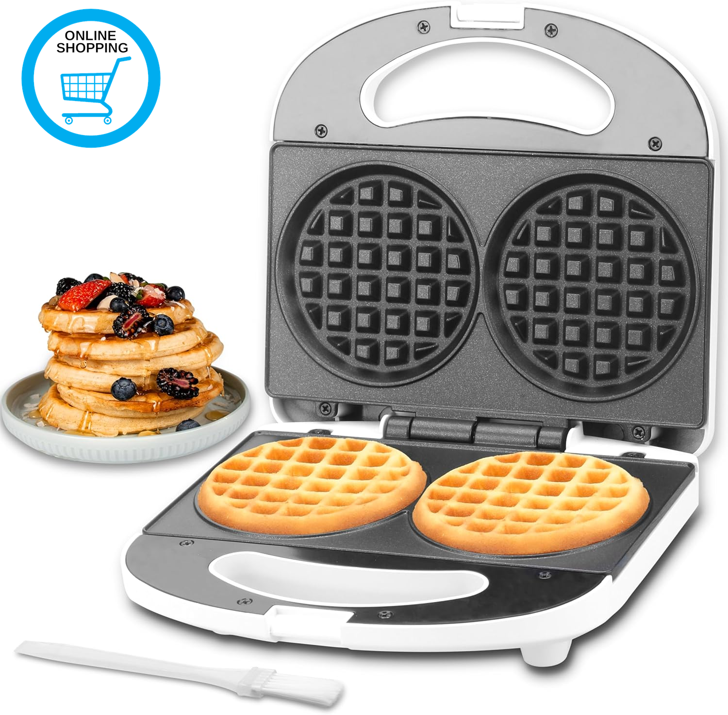 Double Mini Waffle Maker NonStick SweetSavoury Snacks Desserts Giles Posner